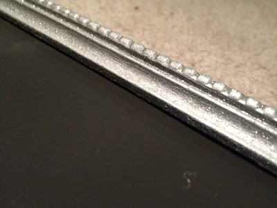 I waited at least 24hrs for the spray paint to dry before I added a coat of Martha Stewart's glitter paint to the borders to give it a more glam look. After a few hours of drying, I went ahead and lined up the border on the chalkboard and began to glue it using Elmer's Wood Glue. I waited few hours for that to dry just to make sure everything was secured and began to measure the chalkboard to see where I would install the picture frame brackets.